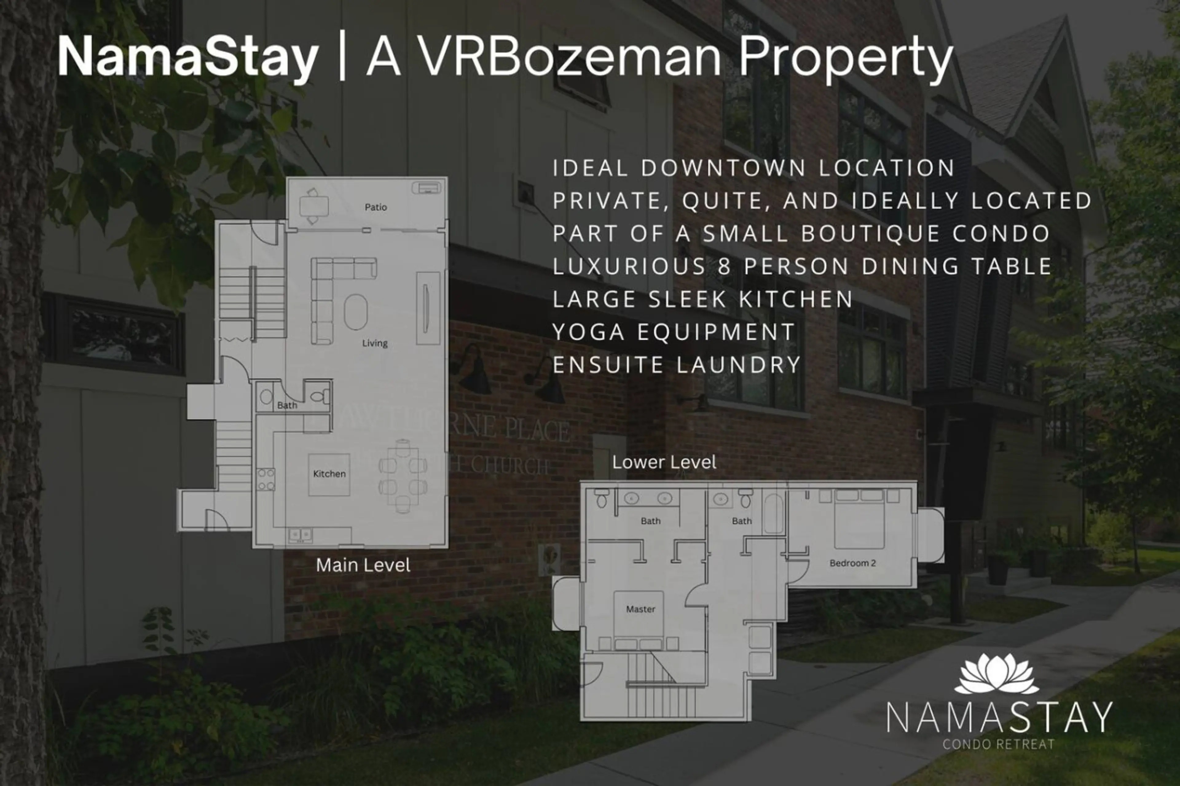 Discover serenity at the NamaStay Condo Retreat, a haven of tranquility nestled in the heart of Beautiful Downtown Bozeman, Montana. Immerse yourself in a space thoughtfully adorned with a yoga-inspired touches, offering luxury and comfort for a truly rejuvenating escape. Just moments away from vibr...
